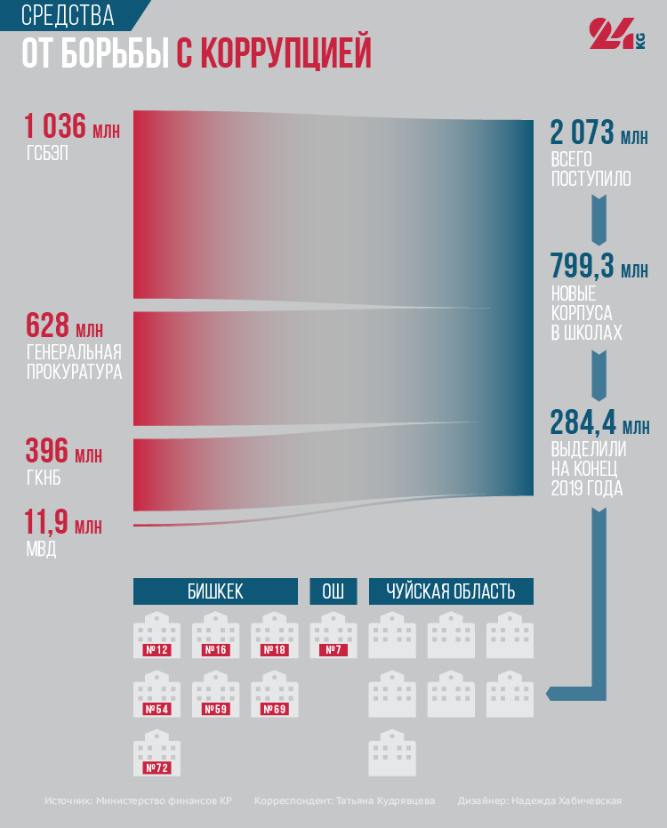 В июле 2018 года в Кыргызстане создали Единый счет, куда поступают средства от борьбы с коррупцией. За их счет в стране хотят решить проблему с нехваткой школ.