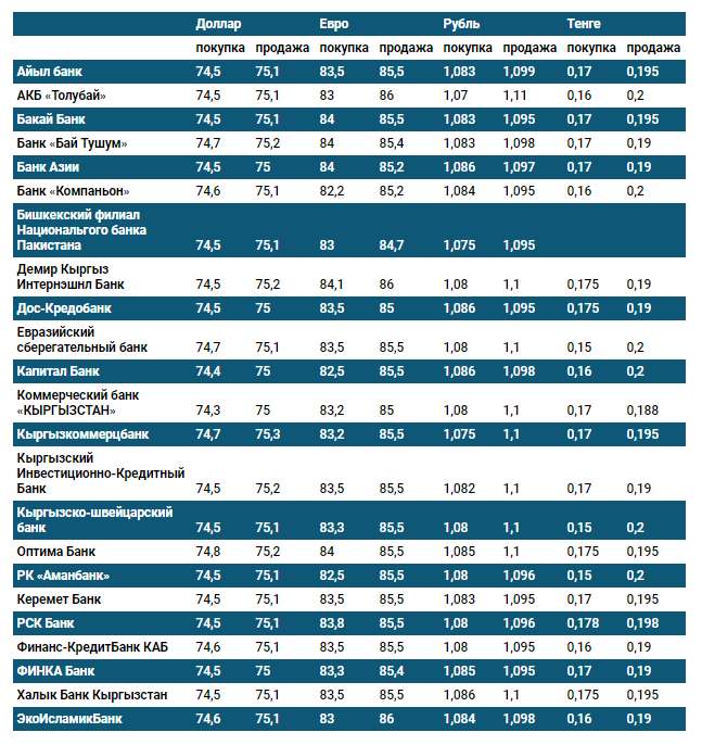 Курсы указаны для наличного обмена валютой. Данные получены с сайтов коммерческих банков. В случае возникновения вопросов о представленных данных следует обращаться непосредственно в комбанки.