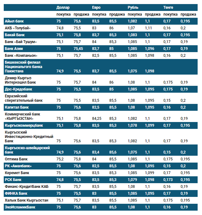 Курс доллара в коммерческих банках Кыргызстана на 26 июня