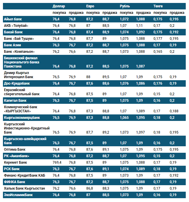 Курс доллара в коммерческих банках Кыргызстана на 22 июля