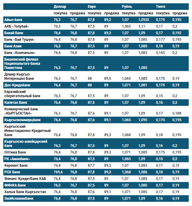 Курс доллара в коммерческих банках Кыргызстана на 23 июля