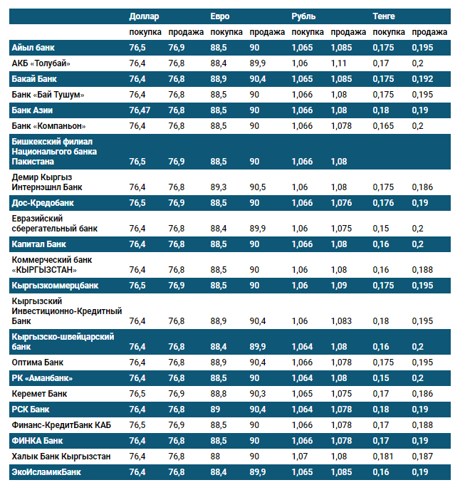 Курс доллара в коммерческих банках Кыргызстана на 27 июля