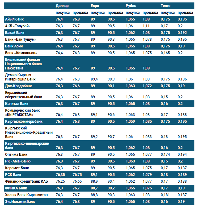 Курс доллара в коммерческих банках Кыргызстана на 28 июля