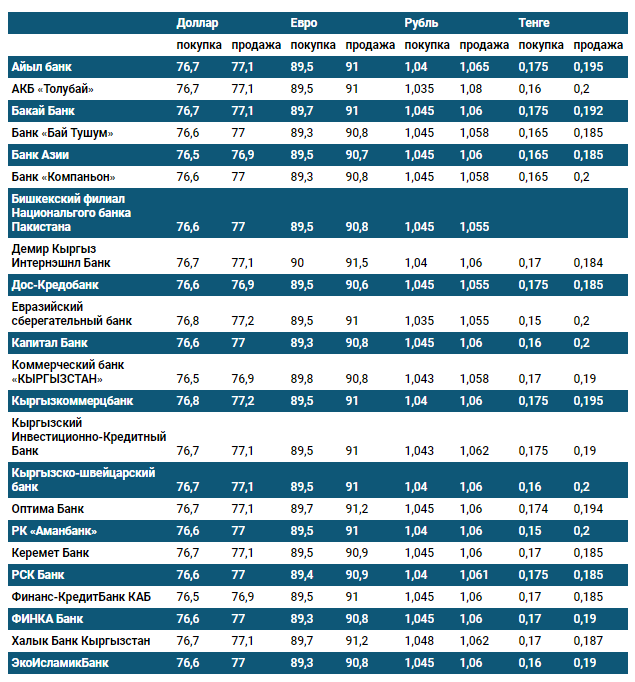 Курс доллара в коммерческих банках Кыргызстана на 4 августа
