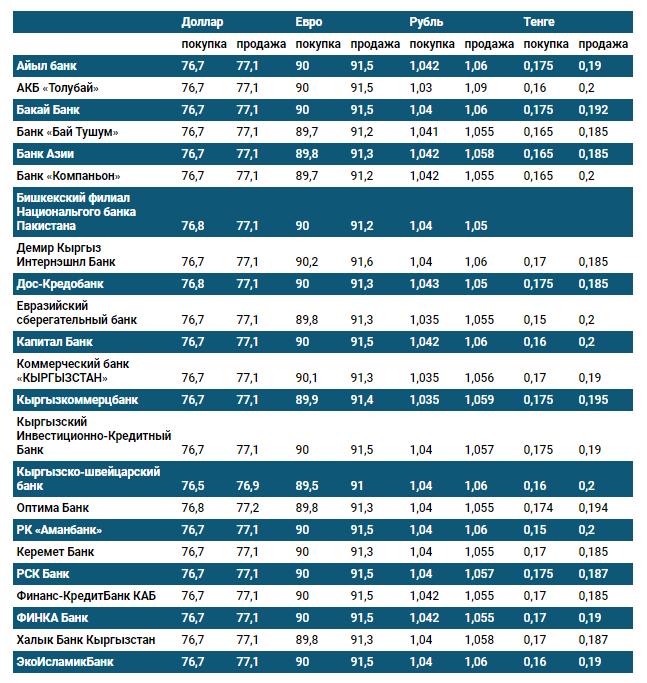 Курс доллара в коммерческих банках Кыргызстана на 5 августа