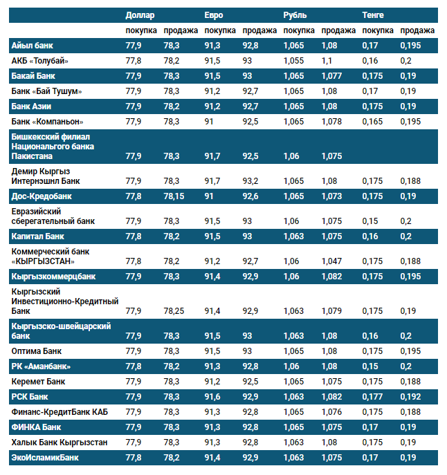 Курс доллара в коммерческих банках Кыргызстана на 14 августа
