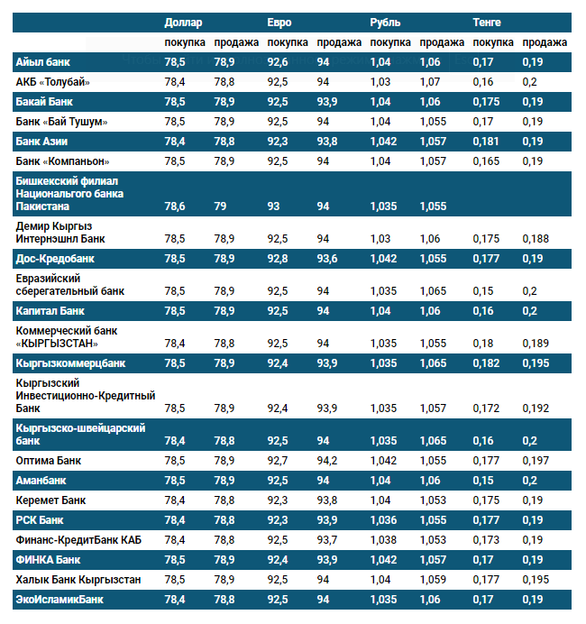 Курс доллара в коммерческих банках Кыргызстана на 4 сентября