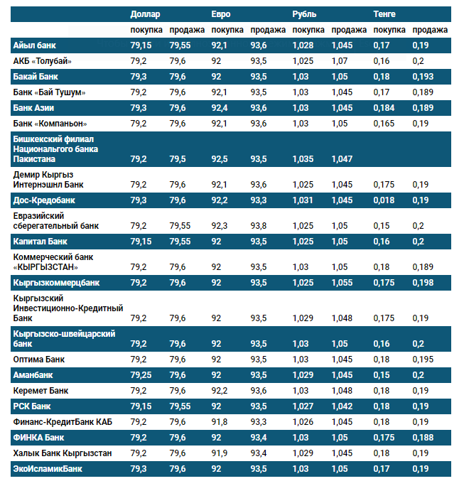 Курс доллара в коммерческих банках Кыргызстана на 24 сентября