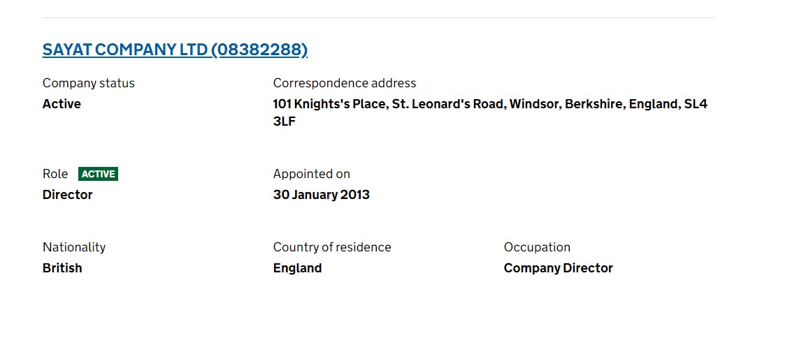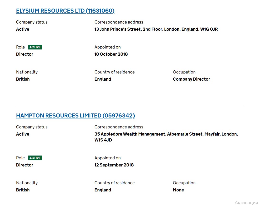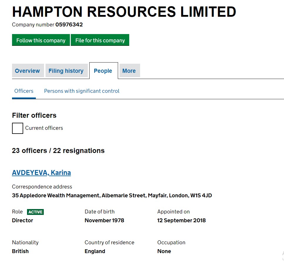 Карина Авдеева, к слову, является директором еще трех предприятий. Одно из них SAYAT COMPANY LTD расположено по тому же адресу, что и Hampton Resources. Эта компания занимается услугами по бронированию и поддержке образования.