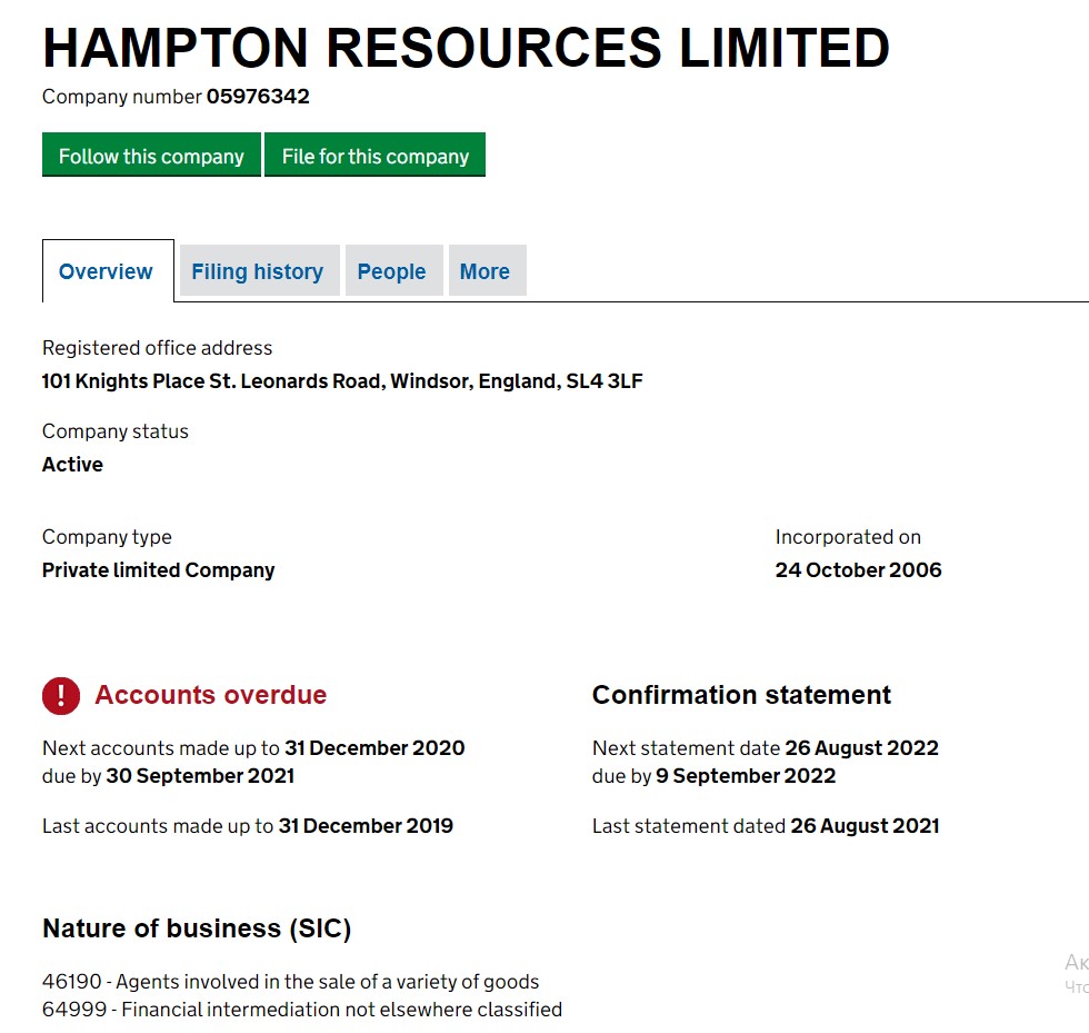 Теперь самое интересное. На сайте Регистрационной палаты Великобритании есть сведения о Hampton Resources. Сравнение адреса и руководящего состава показывает, что, скорее всего, речь идет именно о компании, которая будет управлять ТЭЦ. Известно, что в октябре прошлого года Hampton Resources сменила адрес и переехала из Лондона в Виндзор.