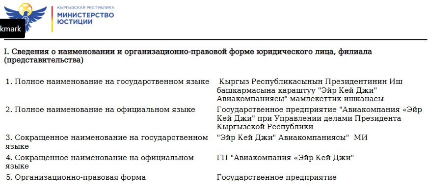 Из указанной информации следует, что государственное предприятие «Авиакомпания «Эйр Кей Джи» при управлении делами президента» прекратило свою работу.