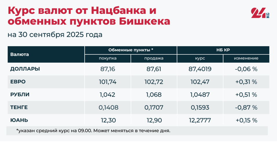 - Официальный курс НБ КР: 87,4019 сома (снижение на 0,06 процента).