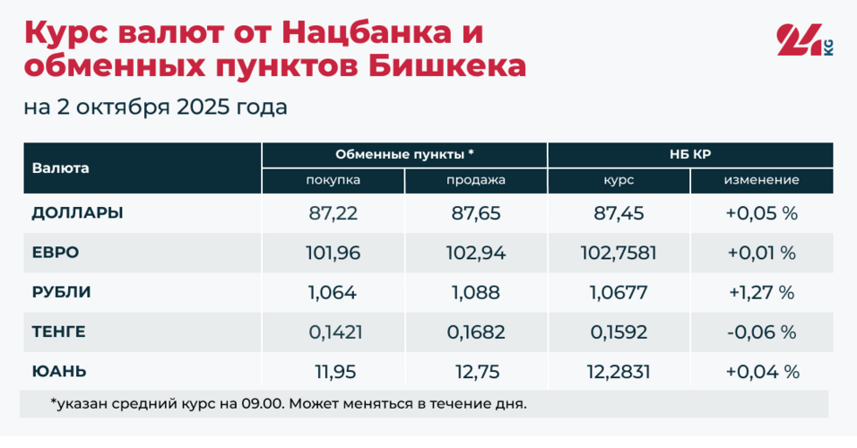 - Официальный курс НБ КР: 87,45 сома (рост на 0,05 процента).