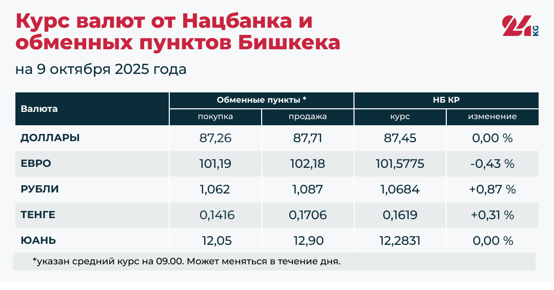 - Официальный курс НБ КР: 87,45 сома (без изменений).