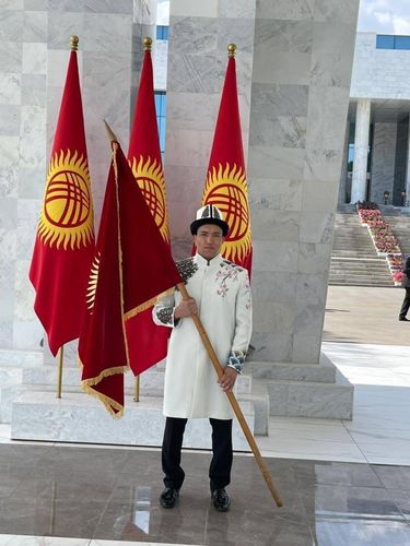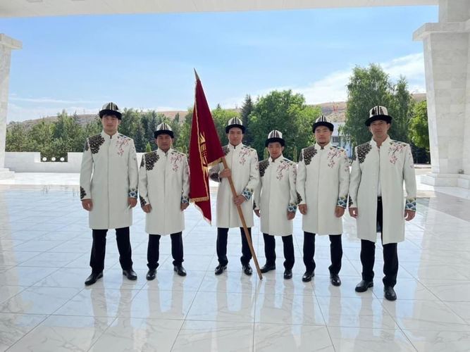 The head of the Cabinet of Ministers of Kyrgyzstan Ulukbek Maripov handed the flag of Kyrgyzstan to the captain of the Kyrgyz national team Atabek Azisbekov.