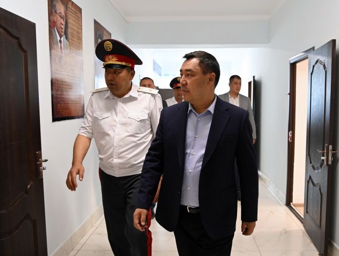 The President examined the offices of the investigation department, the duty station and the assembly hall in the building. There is also a sports hall inside the building, a digital security center, from where, using security cameras, the situation in crowded places throughout the district is monitored in real time and communication with the republican center in Bishkek is maintained.