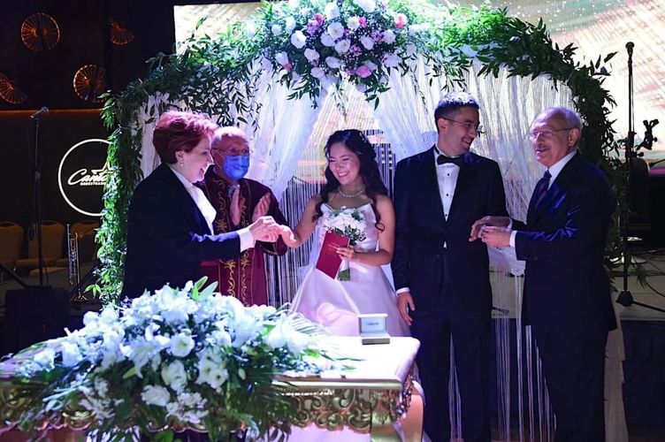According to their information, the newlyweds were personally congratulated by the Mayor of Ankara Mansur Yavas and the Chairman of the IYI party Meral Aksener, the Chairman of the Republican People’s Party Kemal Kilicdaroglu.