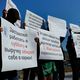 Municipal parking attendants hold rally in Bishkek