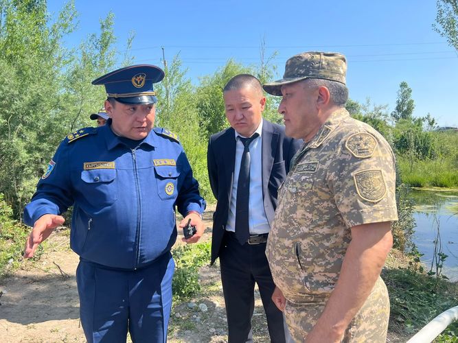 «The border section at the 62-65th kilometer of Bishkek — Naryn — Torugart highway was chosen as the venue for the exercises. It is wooded area divided by Chu river. There is a lot of dry grass. A gas station and fuel oil storage are located on the territory of Kyrgyzstan along the highway. There are reeds, trees and dry grass from the side of Kazakhstan. According to the scenario, the forest fire spread to the gas station in the territory of Kyrgyzstan, and then to the trees around DEU-34 enterprise,» the statement says.