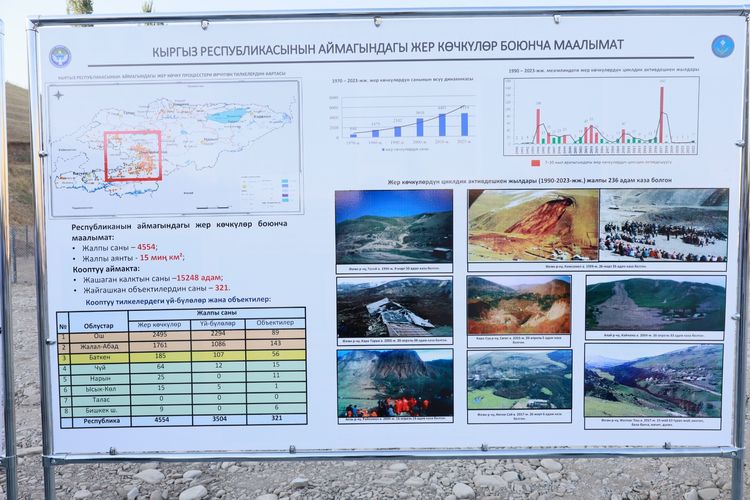Akylbek Japarov noted that equipping the Ministry of Emergency Situations with appropriate special equipment is a priority, given that the republic is located in the zone of most natural disasters, including earthquakes, floods and landslides. In 2017, a massive landslide occurred in Uzgen, killing more than 20 people. The risk of landslides in the area still remains, despite the measures taken by the state. Some residents were resettled, but there were also those who did not want to leave this place.