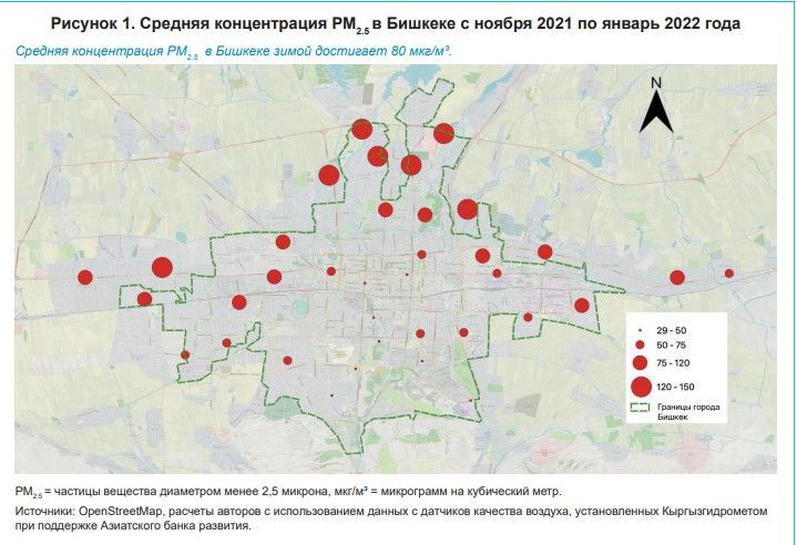«Average annual PM2.5 concentrations in the city are about 30 micrograms per cubic meter (µg/m³), and in winter they reach 80 µg/m³, with even 150 µg/m³ in one area in the north of the capital. The WHO recommended limit value for the annual average concentration of PM2.5 is 5 µg/m³,» the document says.