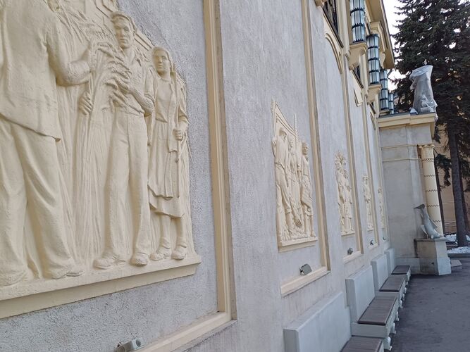 The pavilion worked from 2010 to 2016, and in 2017 it was closed for restoration and preparation of a new concept: creation of an exposition about the history and culture of Kyrgyzstan. Agraf LLC received 43,790,157 soms for restoration works. The money was allocated by Kyrgyzdipservice state enterprise and investors. Later, 13.7 million soms more were required.The pavilion of Kyrgyzstan at VDNKh can be seen from afar. The building in red-gold colors catches the eye, and one wants to come closer and see what is inside. All external repair work is completed. Scaffolding is also not visible inside the building.