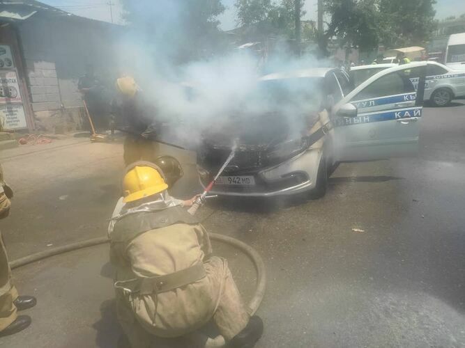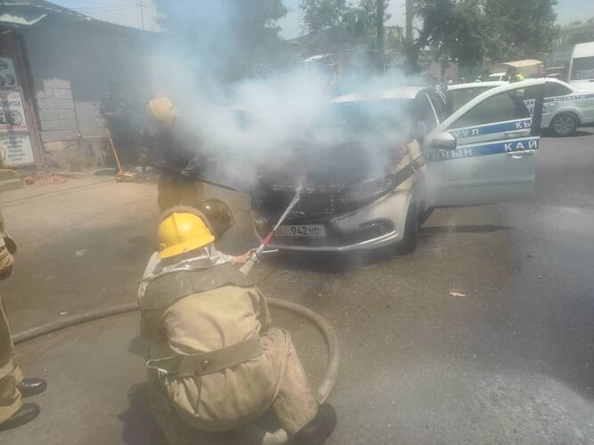 The press service of the Department of the Patrol Police Service of Osh told 24-kg.com news agency that no one was injured as a result of the fire. The fire broke out under the hood in the engine compartment. The officers tried to put it out by their own forces, but the employees of the Ministry of Emergency Situations arrived and extinguished the fire. The necessary expertise was ordered.