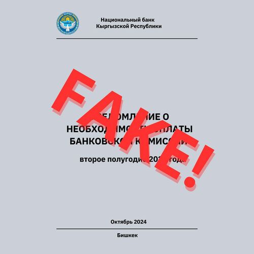 Fake notifications on behalf of the National Bank of the Kyrgyz Republic are being sent out on social media. Fraudsters send fake messages to citizens demanding to pay bank fees, the National Bank of the Kyrgyz Republic reported.