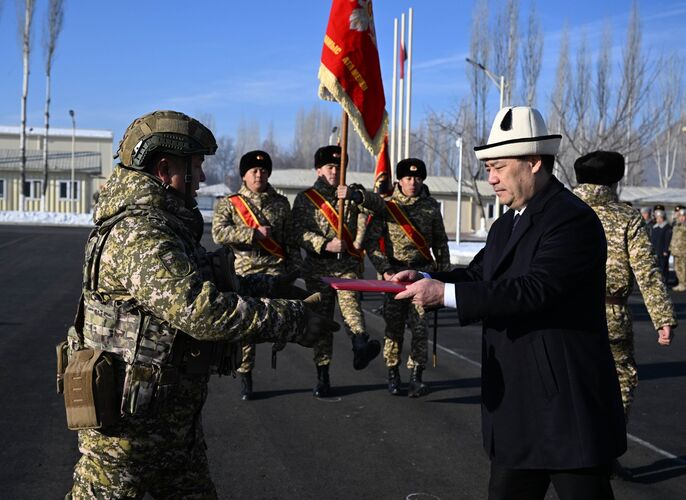 Sadyr Japarov called on military personnel to keep the Colours as a sacred relic, expressing confidence that they will faithfully serve the Motherland, and wished peace on the borders of the country and well-being to the people.