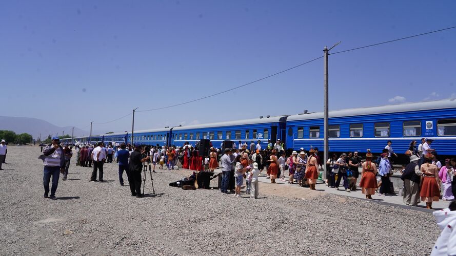 On June 6, the first train from Bishkek arrived in Balykchy city, Issyk-Kul region, carrying 696 passengers. The state enterprise NC Kyrgyz Temir Zholu reported.