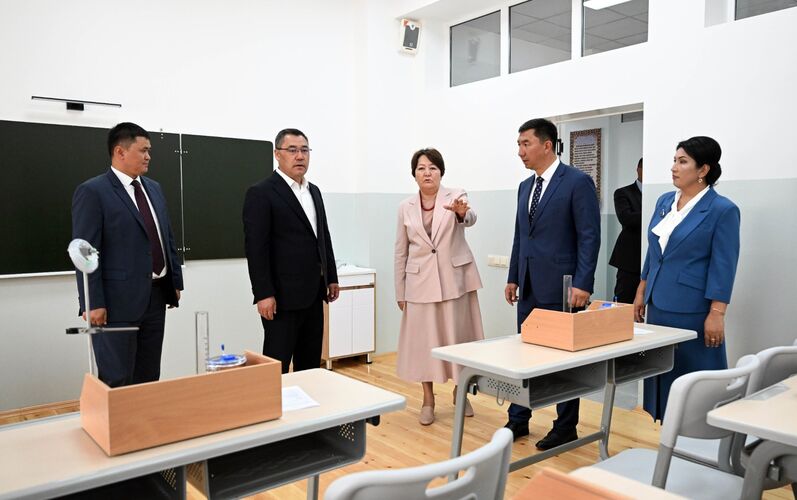 President of Kyrgyzstan Sadyr Japarov inaugurated the new building of the Nyshanbai Alykulov school in the village of Min-Oruk, Jalal-Abad region. The ceremony took place as part of his working trip to the region, the presidential press service reported.