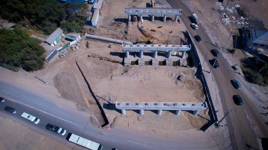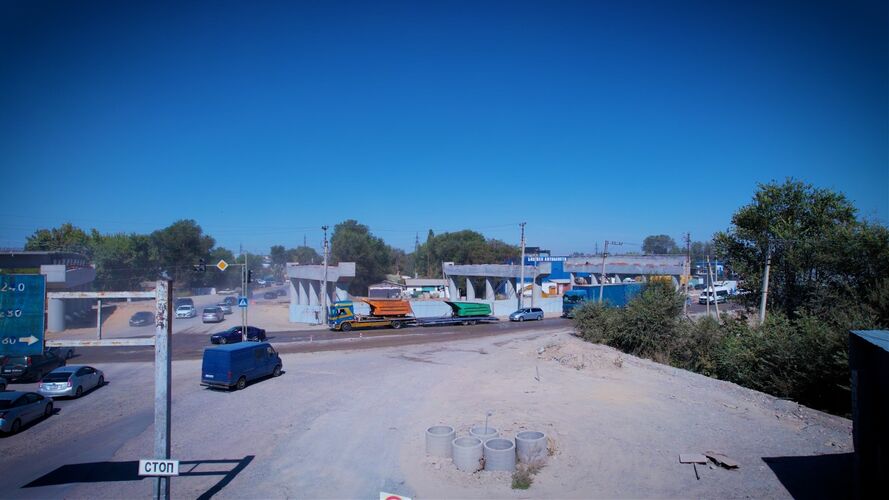 At the intersection of Alma-Atinskaya and the bypass, an overpass is being built. City authorities promise it will ease traffic, but for now the road has turned into a bottleneck. Workers in helmets rush around, welding sparks flash, and the pounding of jackhammers mixes with car horns.