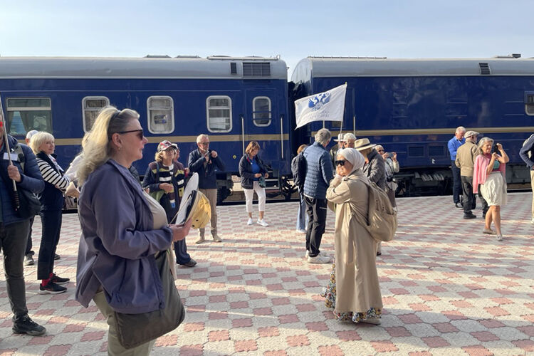 The Golden Eagle luxury tourist train arrived at Bishkek-2 railway station on September 30. More than 60 foreign tourists were welcomed there by representatives of NC Kyrgyz Temir Zholu state enterprise.