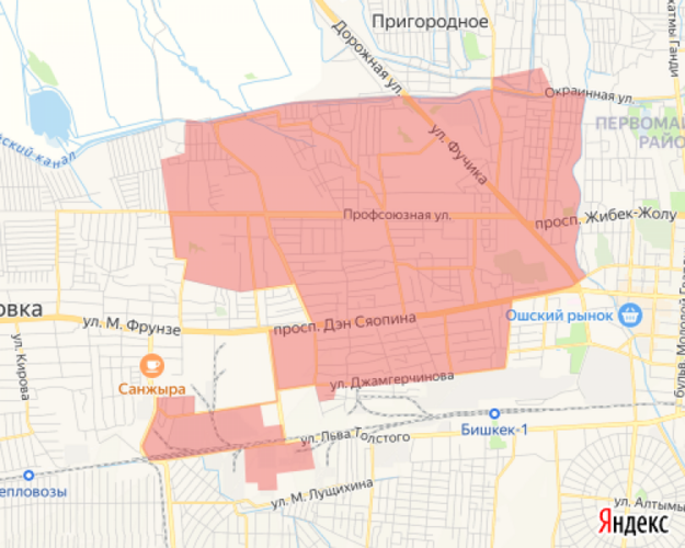 - Voenny Gorodok and Kyzyl-Asker residential complexes, 110th Quarter, and Dostuk microdistrict.