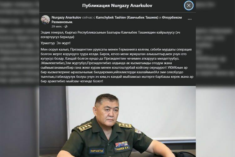 The day before, Kamchybek Tashiev was relieved of his duties as Deputy Chairman of the Cabinet of Ministers and Chairman of the State Committee for National Security.