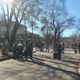 People again gather near GKNB building in Bishkek. Entrances to the department are blocked, police is on robust security regime. There are about 100 people now.