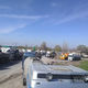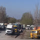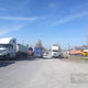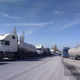 Strike of truck drivers. Carriers pass tank trucks with fuel