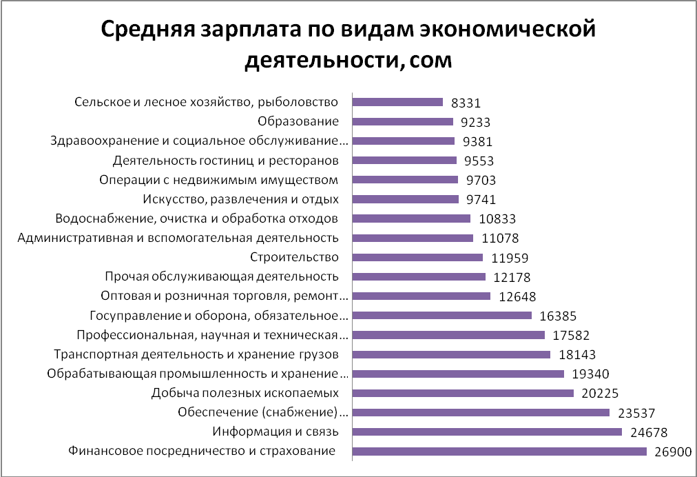 5. Больше всего в Кыргызстане зарабатывают в сфере финансового посредничества и страхования, меньше всего - в сельском хозяйстве.