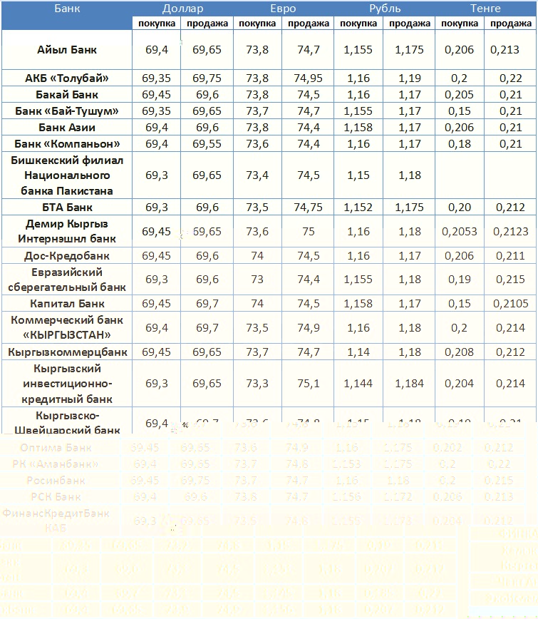 Курс доллара в коммерческих банках Кыргызстана на 20 января