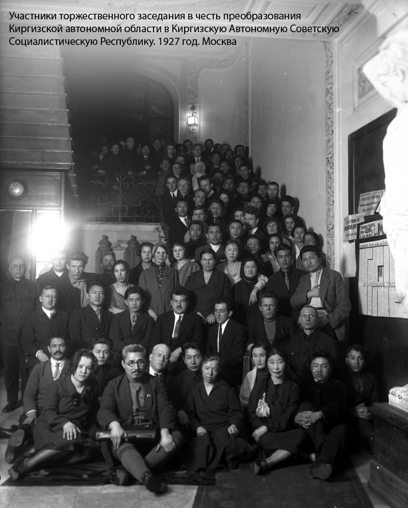 Участники торжественного заседания в честь преобразования Киргизской автономной области в Киргизскую Автономную Советскую Социалистическую Республику. 1927 год. Москва