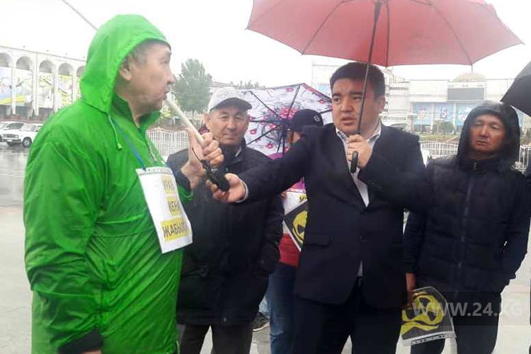 «Эч нерсеге карабай биз митингге чыктык. Биздин буга толук укугубуз бар деп эсептейбиз. Өзүңүздөр көргөндөй аянтта эч кандай иш-чара уюштурулган жок», -деди кыймылдын лидери Эркин Булекбаев.