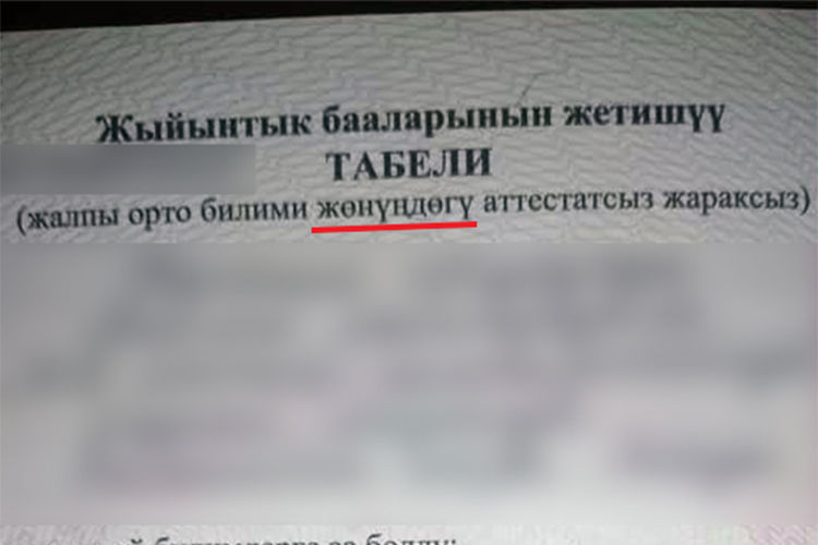 Орто мектепти бүтүргөндүгү тууралуу аттестатты катасы менен басып чыгарышкан. Бул тууралуу 24-kg.com агенттигине окурмандар билдиришти.
