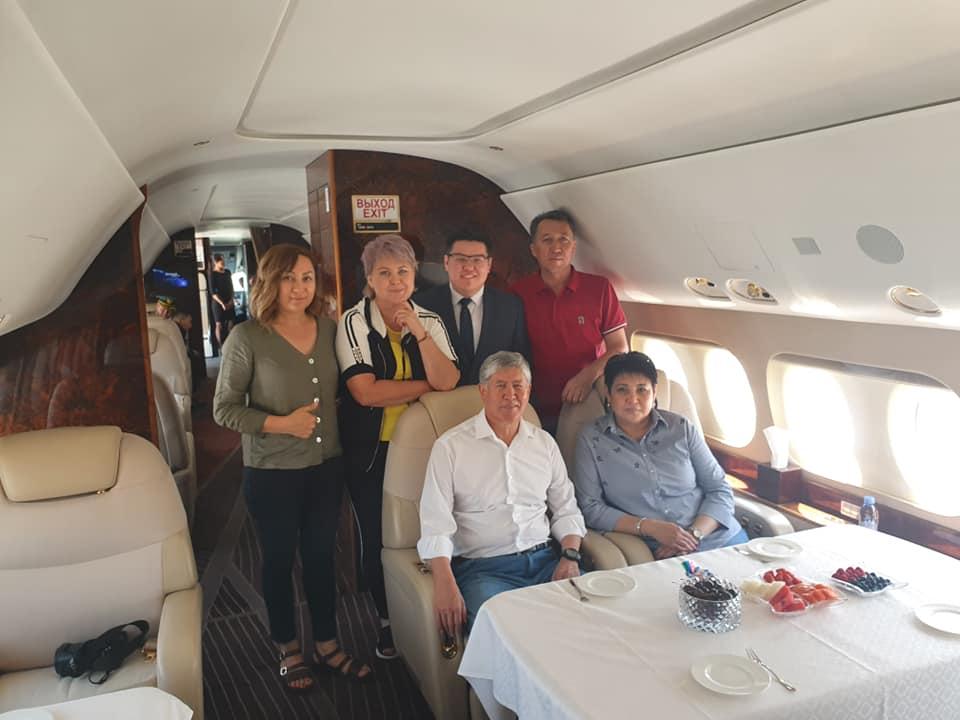 Алмазбек Атамбаев РусДжет авиакомпаниясынын учагы менен «Кант» авиабазасынан Москвага учуп кетти. Бул тууралуу КСДПнын саясый кеңешинин мүчөсү Кундуз Жолдубаева билдирди.