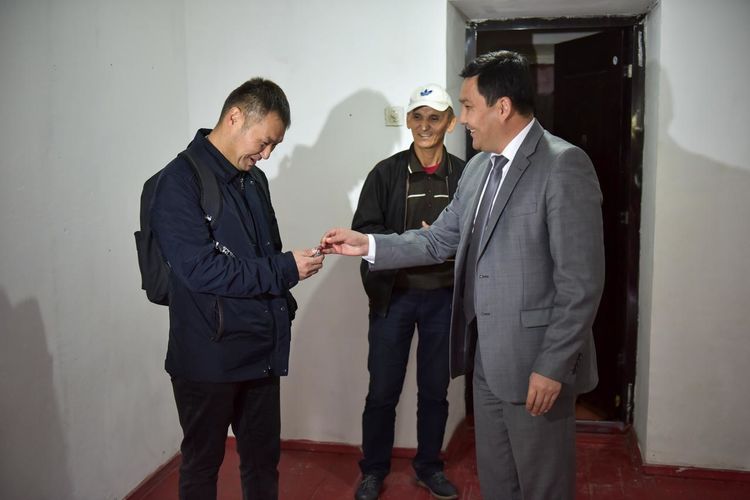 Маалыматка караганда, Муниципалдык мүлк башкармалыгынын жетекчиси Нурдин Тынаев Фучик көчөсүндө жайгашкан жатаканадан 2 аз камсыз болгон үй-бүлөгө бөлмөнүн ачкычын тапшырды.