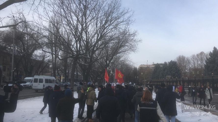 Жемкорлукка каршы нааразычылык билдирип жана ЖМКларды колдоо ирээтинде өтүп жаткан тынчтык акциясынын катышуучуларын көздөй «Ак үй» тараптан желек көтөрүшкөн кишилер чыгышты. Аларды чагымчыл күчтөр болушу мүмкүн деп айтышууда.