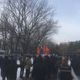 #REакция 2.0 митингинин катышуучулары менен желек көтөргөн кишилердин ортосун милиция тосуп турат.