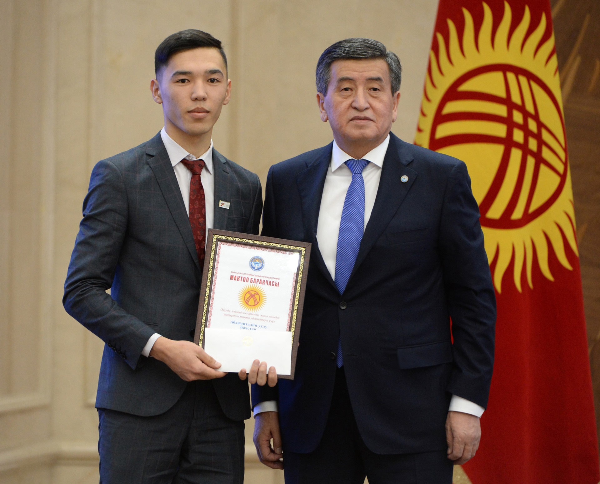 «Келечекте Кыргызстанды өнүктүргөн, өлкөнүн атын чыгарган, элдин сыймыгы болгон, кийинки муунга үлгү болгон адам болгула», — деп баса белгиледи президент.