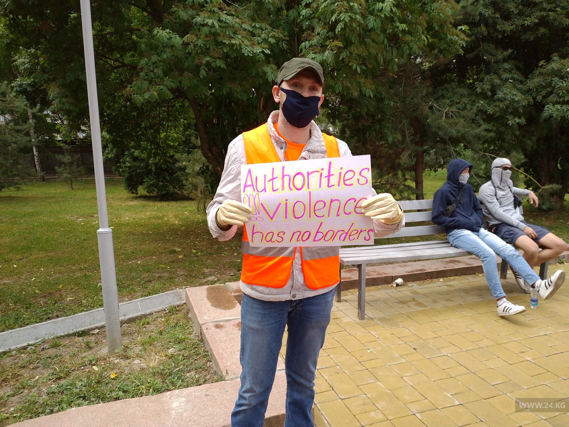 Активист Денис Реут Горький аянтына жалгыз пикетке чыгып, өзүнүн жарандык позициясын билдирди.