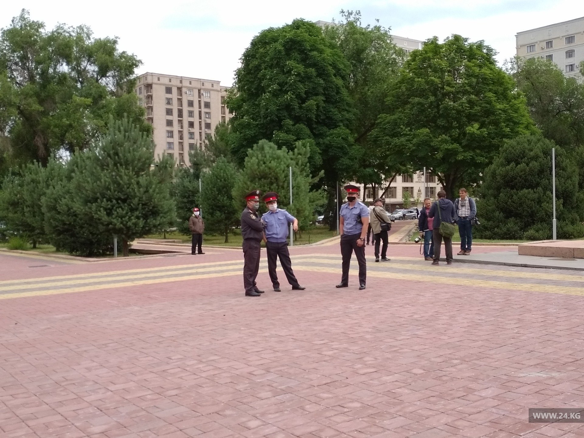 Акциянын тартибин көзөмөлдөө үчүн үч милиция кызматкери келген.