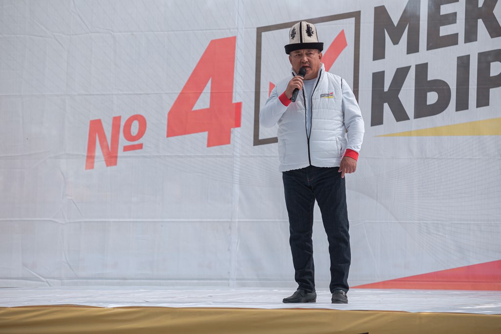 Өлкөнүн өнүгүп-өсүүсүн жана балдарыңызга жаркын келечек кааласаңыз 4-октябрда 4-номердеги «Мекеним Кыргызстан» партиясына добуш бериңиз. «Мекеним Кыргызстан» ар бир кыргызстандыктын партиясы!